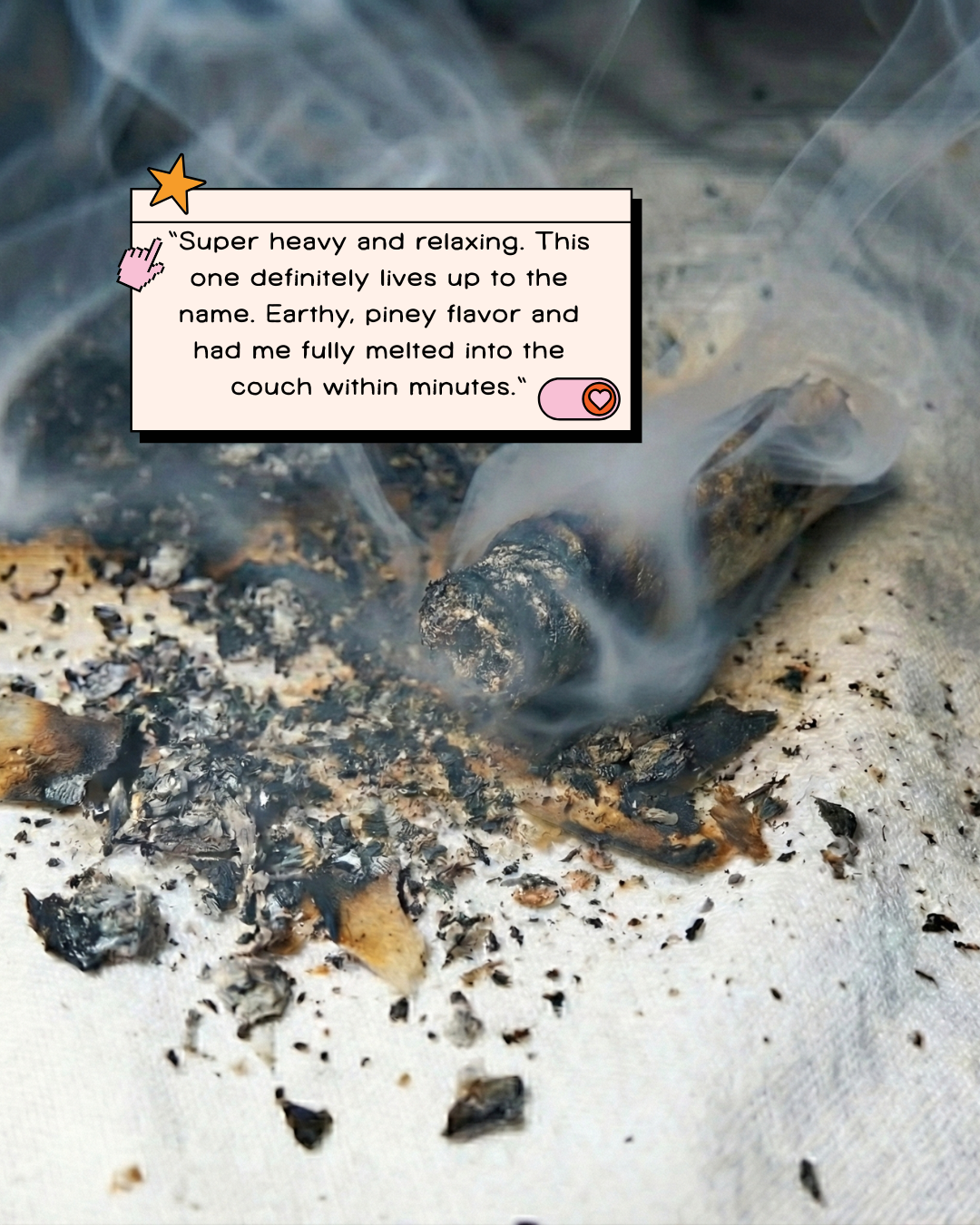 Meet your cancel-your-plans pre roll 🖤🌲 She’s dense, she’s grounding, she’s not asking you to do anything ever again. GG4 rolls in with earthy pine and deep, pungent funk, then gently glues you to the nearest soft surface. Big calm. Big exhale. This is end-of-day relief with zero apologies.