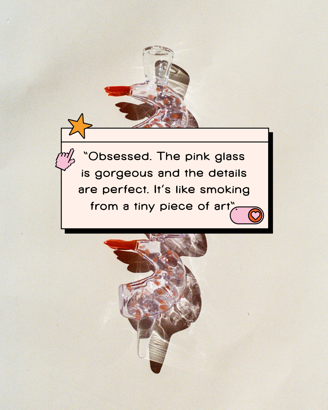 She’s petite. She’s pink. She’s ready to party (cocktail style). The Shrimpette Pipe is serving seafood tower fantasy — a hand-blown glass shrimp fit for poolside puffing, late-night gossip, and main-character delusion. Made from premium borosilicate glass and 100% bad taste in the best possible way.