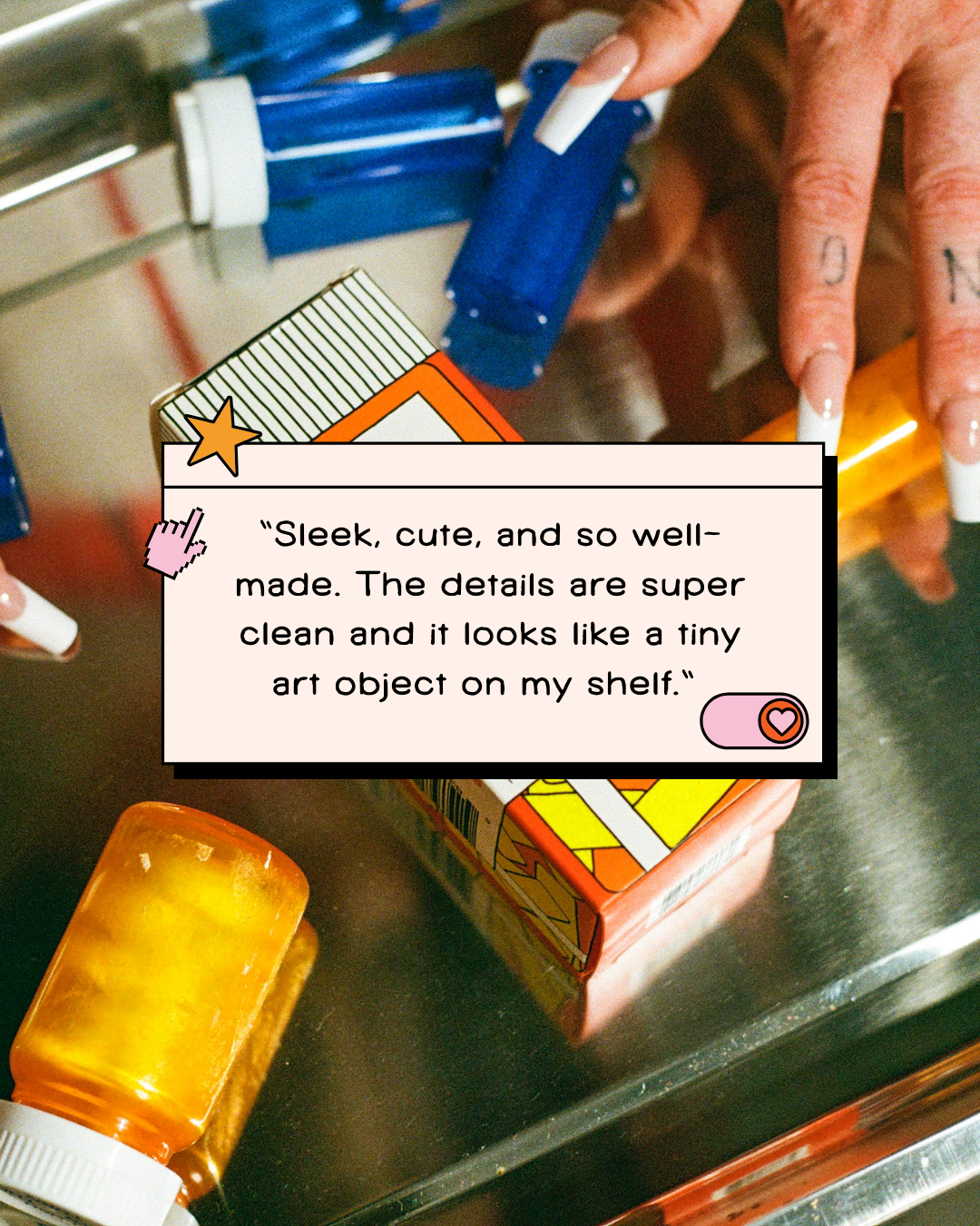 Made from durable borosilicate glass, because fragile energy deserves sturdy glass. Ships in packaging cute enough to hide in plain sight on your vanity next to your actual meds.
