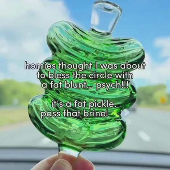 Introducing the Pickle Puffer—a glass dry pipe shaped like the tangy green queen she is. She’s not subtle. She’s not classy. She’s literally a pickle and proud of it.